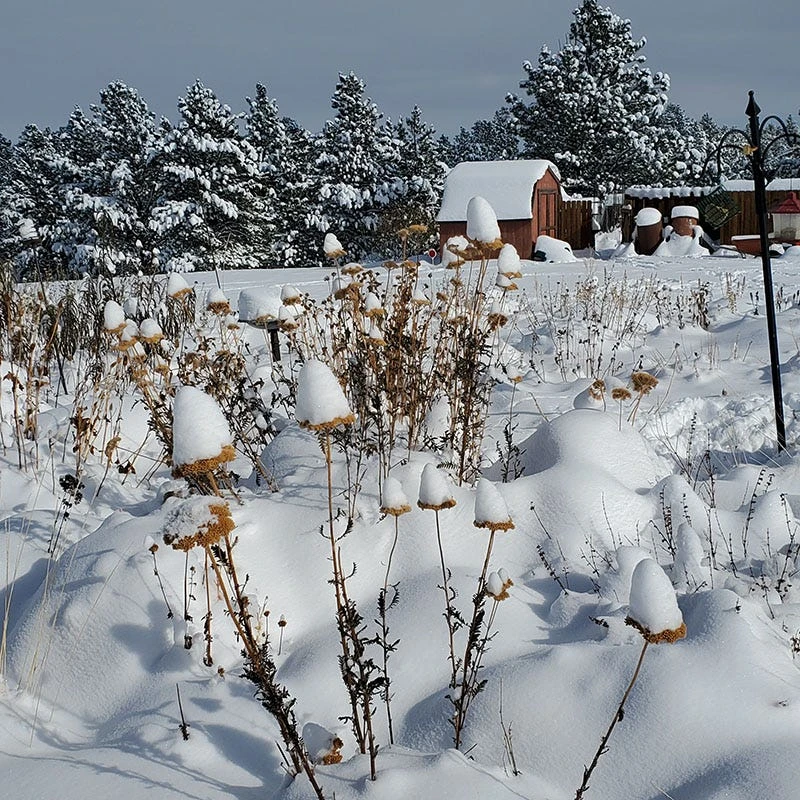 36″ tall x 24″ wide. This always-dependable performer is an essential long-blooming perennial for any xeriscape. ‘Coronation Gold’ is taller than Achillea ‘Moonshine’, has greener foliage and a larger, darker-yellow flower cluster. This is a sterile selection and will not make a nuisance of itself and crowd out its neighbors like tall, yellow seed-grown varieties. A fine companion plant for other larger plants like Blue Mist Spirea and Russian Sage. Superb as a dried, everlasting flower. Salt Tolerant. (cutting propagated)