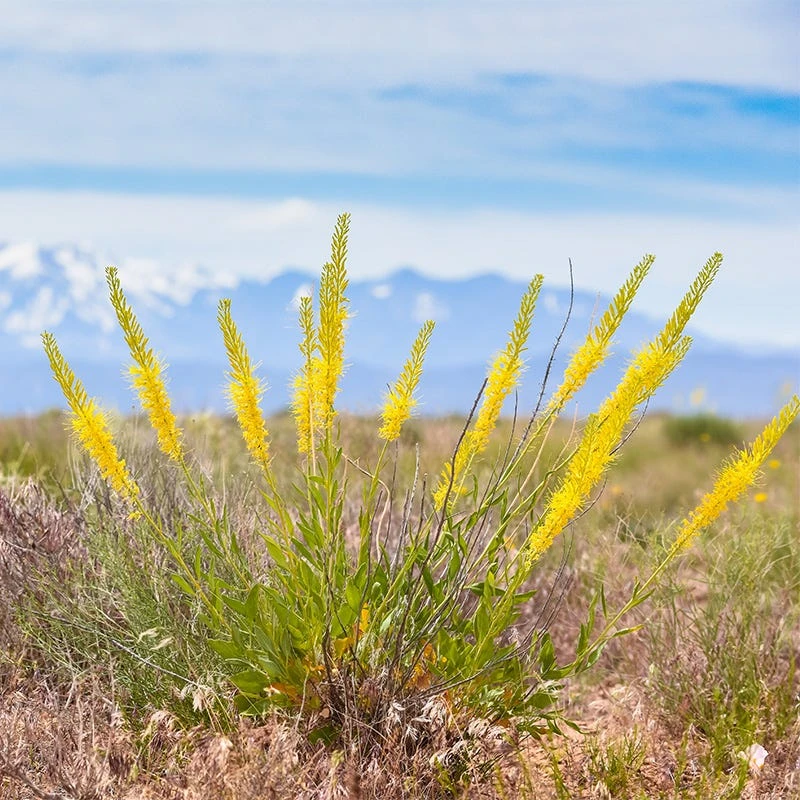 Stanleya pinnata (Prince’s Plume) has striking presence in the open landscape, bearing bright yellow flower spikes over feathery silver foliage. A native of the North American West and Southwest, its hardy, long-lasting flowers that can last for weeks, or months in the right conditions, serving as a beacon for attracting pollinators. ‘Prince’s Plume’ is a fascinating and deer-resistant addition to xeriscapes in arid, semi-desert conditions. (Stanleya pinnata)